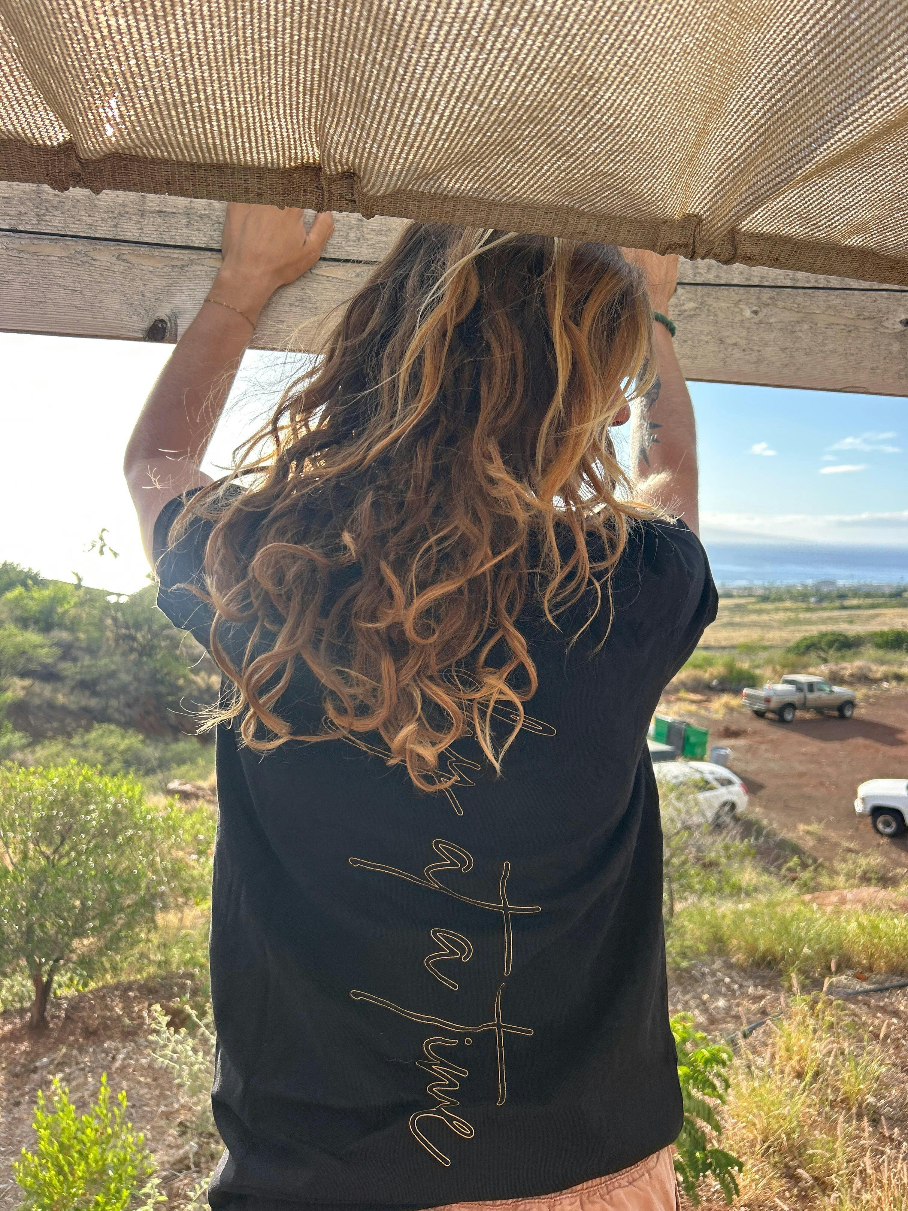 A minimalist tee designed as a daily reminder: quiet, intentional, steady. Printed with the words that shaped our story: One Day At A Time.