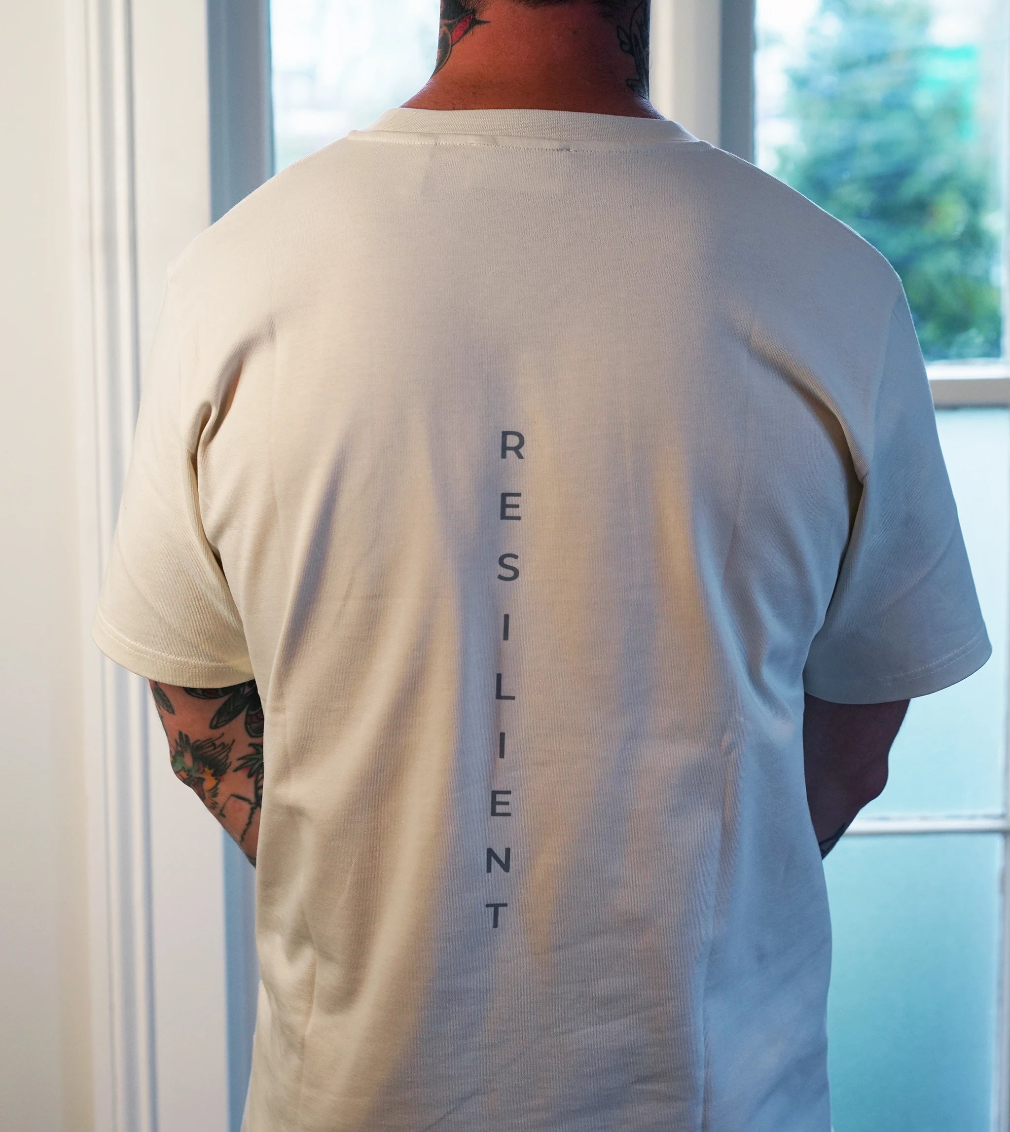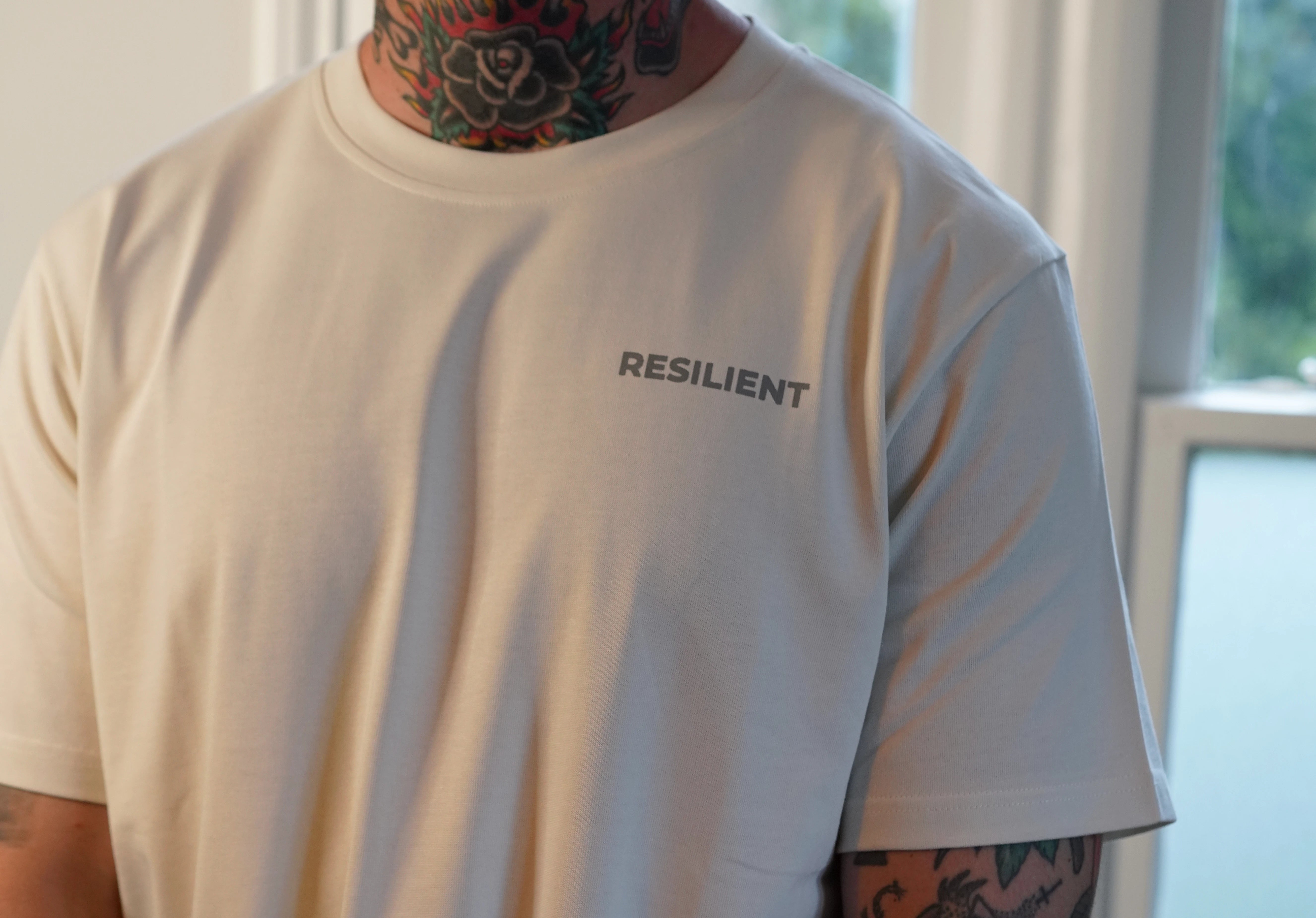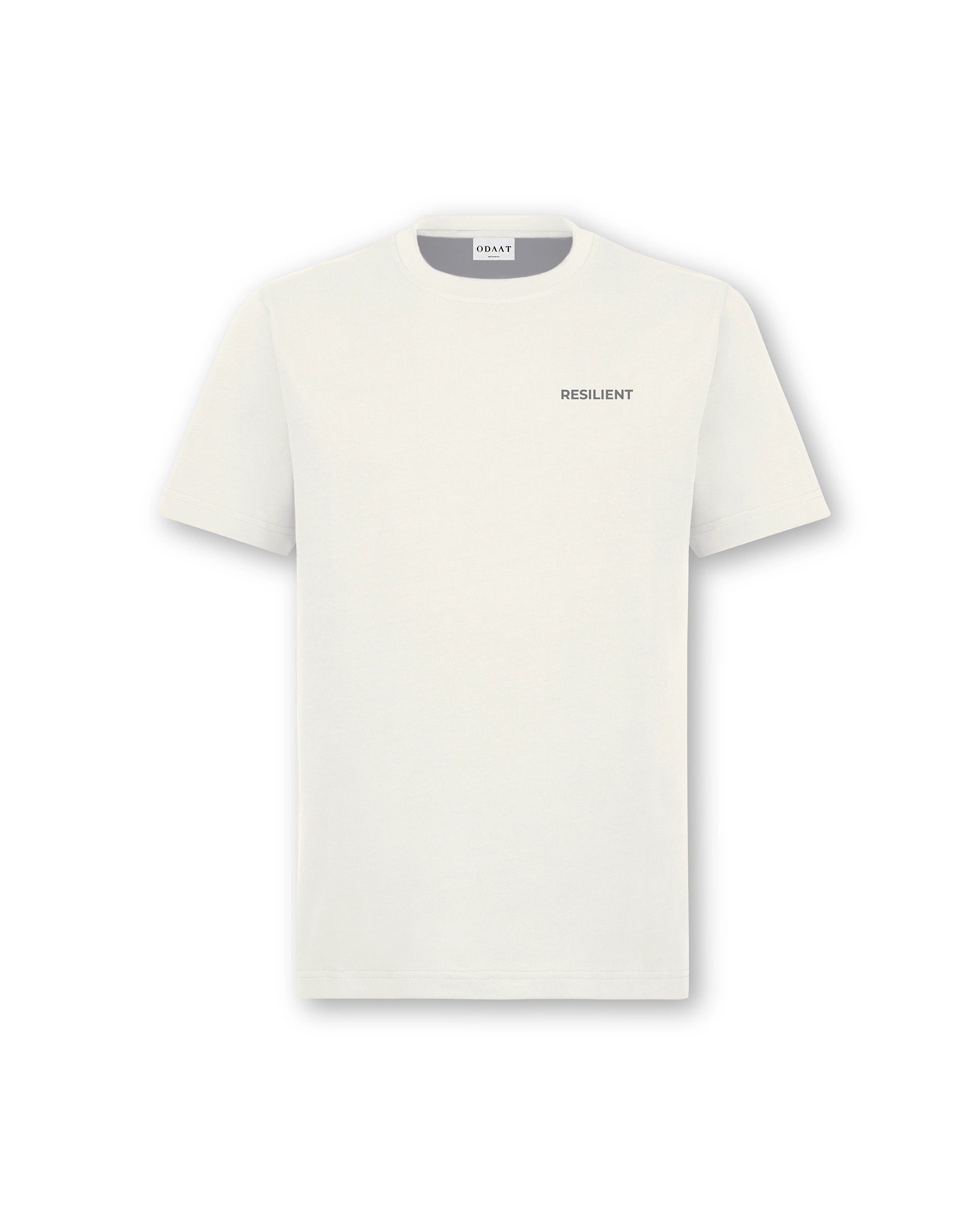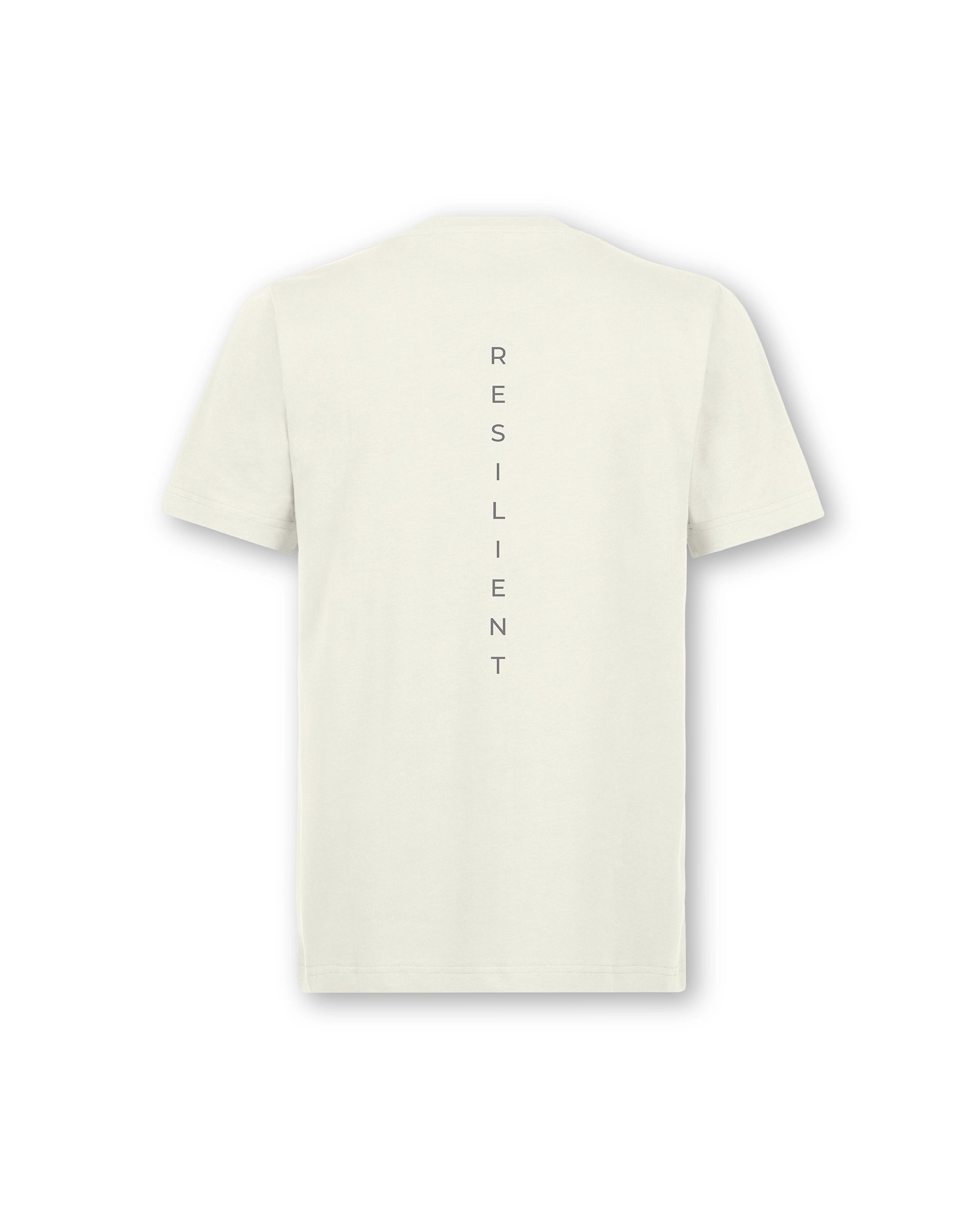 Introducing the "Resilient" tee – Embodying simplicity and strength in design. This minimalist creation features the word "RESILIENT" in a sleek, unobtrusive font. The front showcases the term horizontally across the left chest, while the back aligns it vertically down the spine, epitomizing both endurance and subtlety.